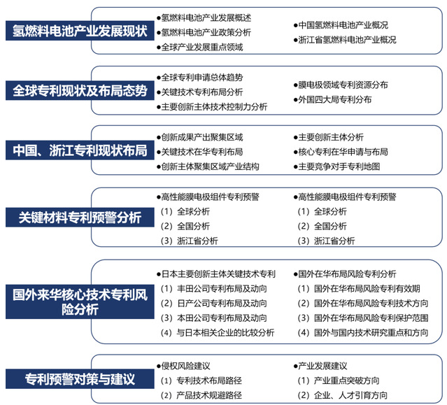 服务背景:在全球绿色低碳转型的关键时期,氢燃料电池技术极具潜力,国外行业巨头凭借先发优势,在该领域构建起严密且庞大的专利壁垒,我国企业发展面临外源性风险挑战。